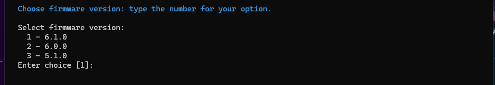 You should now have the option to select either the Lite or Full firmware, Full is selected by default (option 1) for lite, select option 2.&#x20;