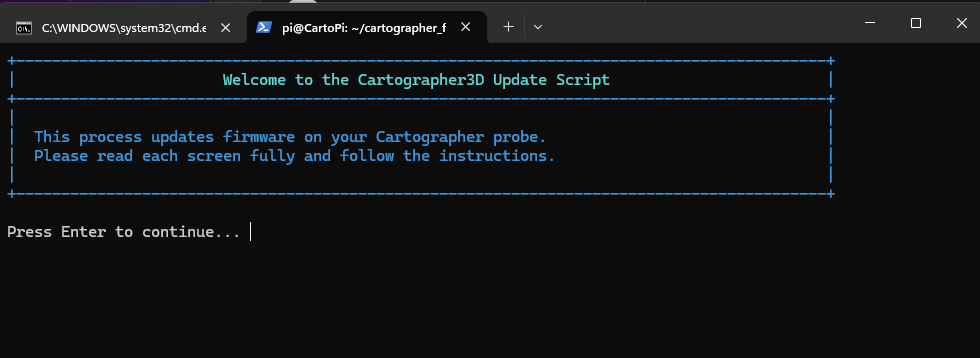 You must have both the Cartographer Firmware repository, and Katapult on your Pi, if you do not have these please connect via SSH and run the following command.&#x20;